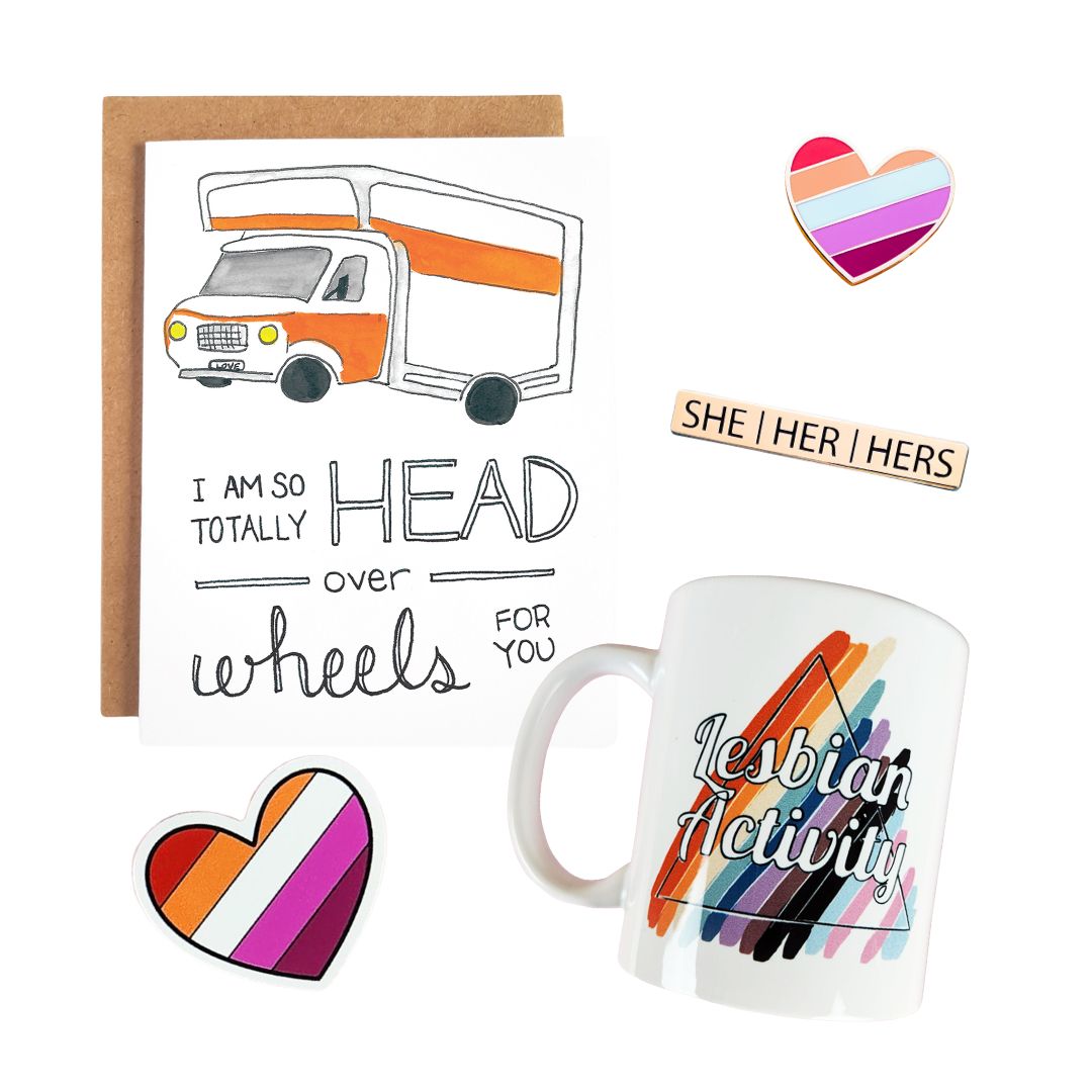 We love Lesbian Love! Get the bundle that shouts it to the world and saves you some $$: The Lesbian Love Lot. This curated bundle features some of our fan-favourite products among the Lesbian community.