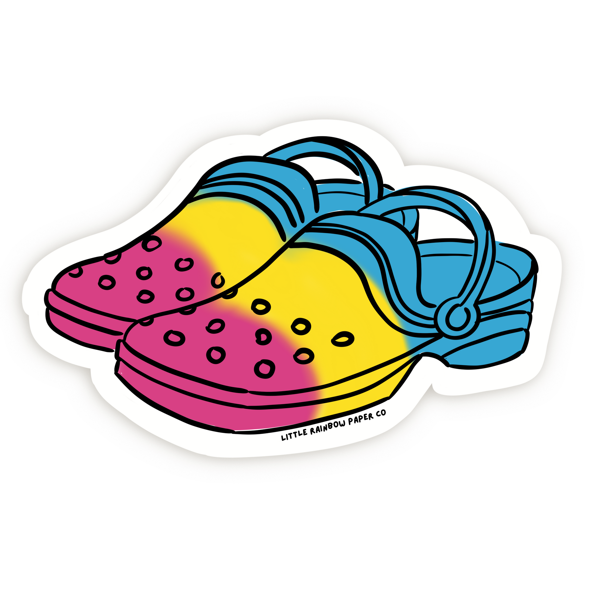 Add a touch of pride to your belongings with our Pansexual Pride Crocs Sticker! Featuring a glossy eco-friendly design of Pan crocs, this sticker is perfect for showing off your support for the LGBTQ+ community. Stick it on your laptop, water bottle, or anywhere you want to spread some love and acceptance! 🏳️🌈 This will make the perfect gift or addition to your water bottle, laptop or phone case.