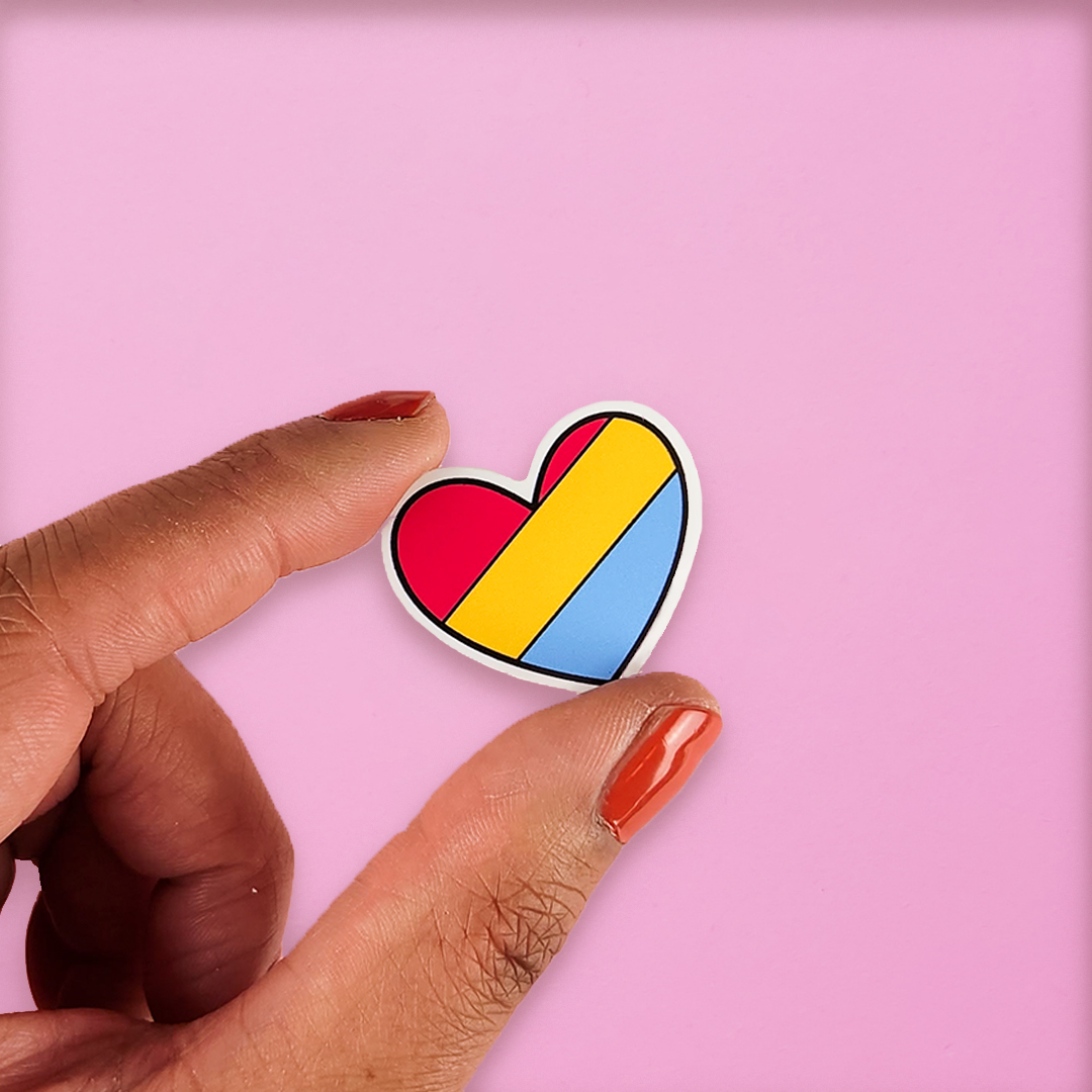 Show the world and your loved ones around you that you support the pansexual community with this cute heart-shaped sticker. It makes the perfect addition to your collection on your water bottle, mug or laptop.