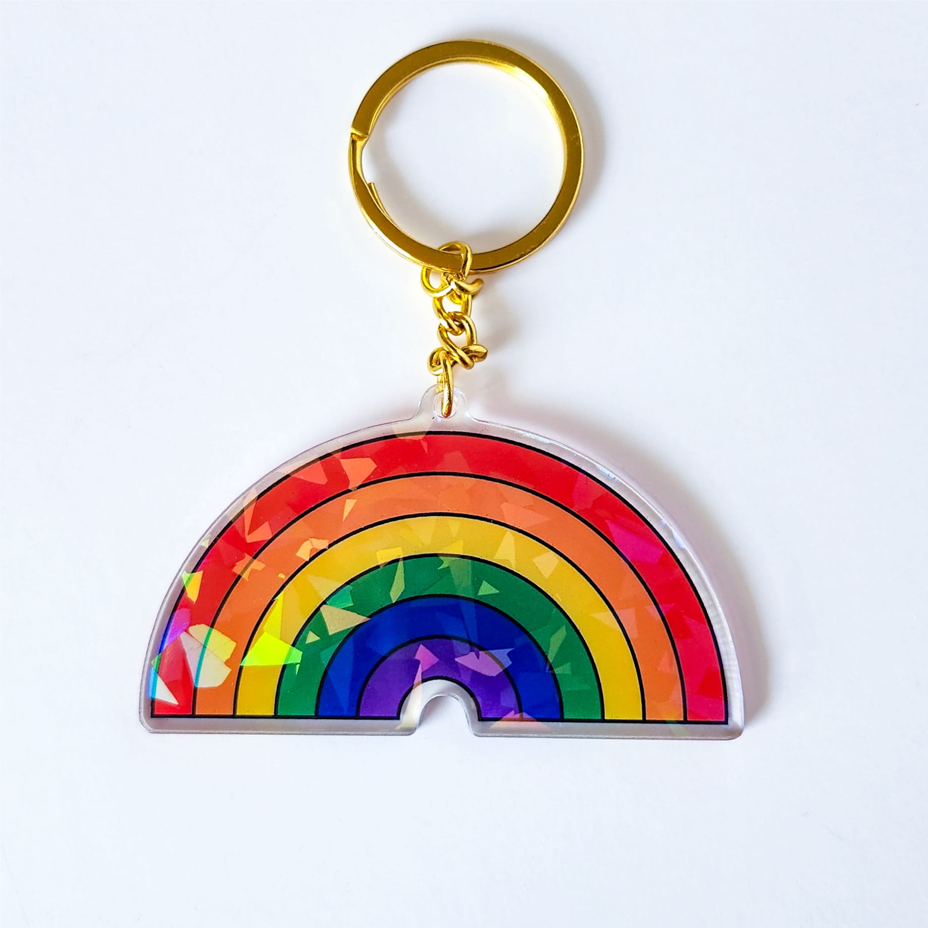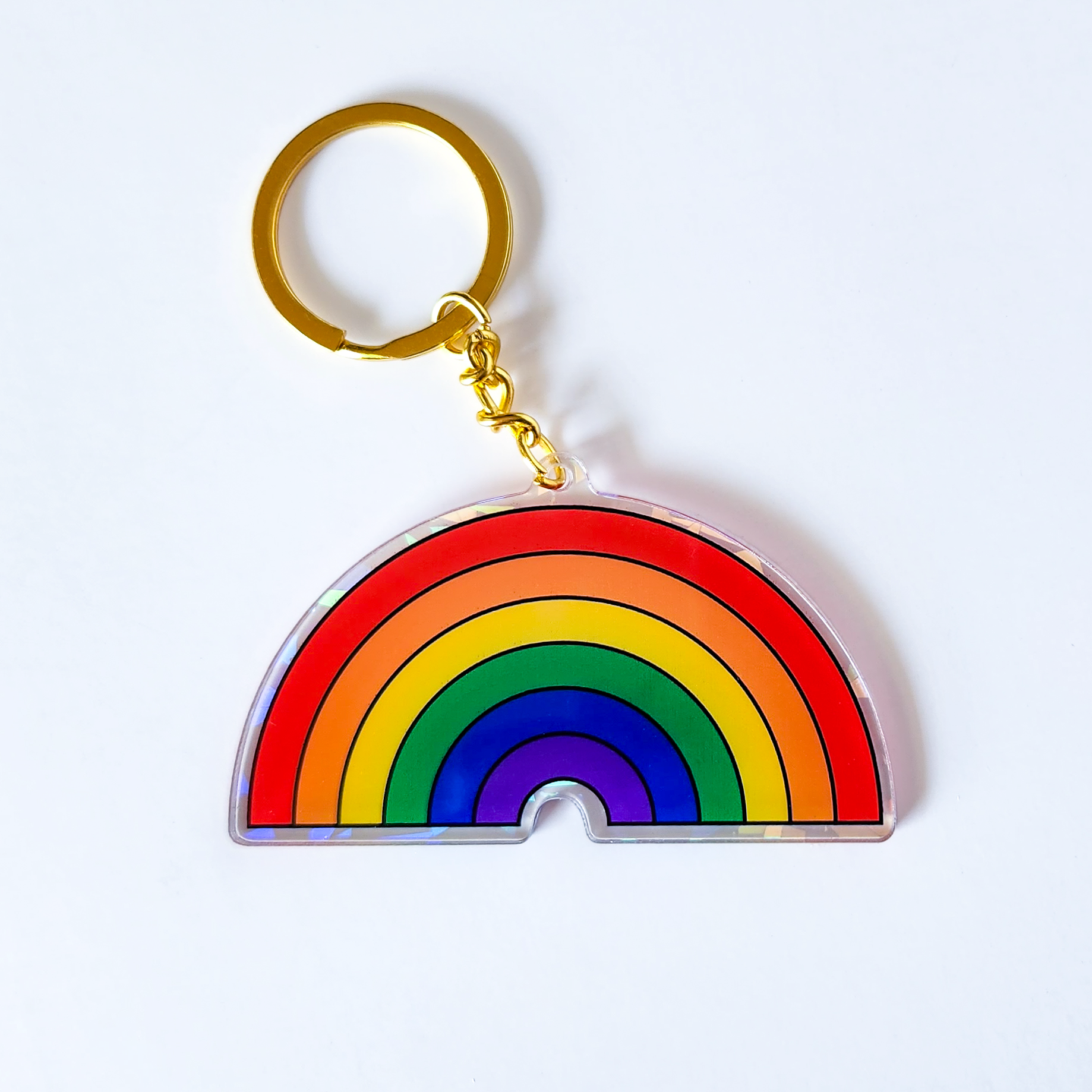 Get ready to add a burst of pride to your keys with our fabulous Holographic Rainbow Keychain! 🌈🔑 This eye-catching accessory showcases the LGBTQ rainbow in all its vibrant glory, bringing a splash of colour and joy to your everyday life.