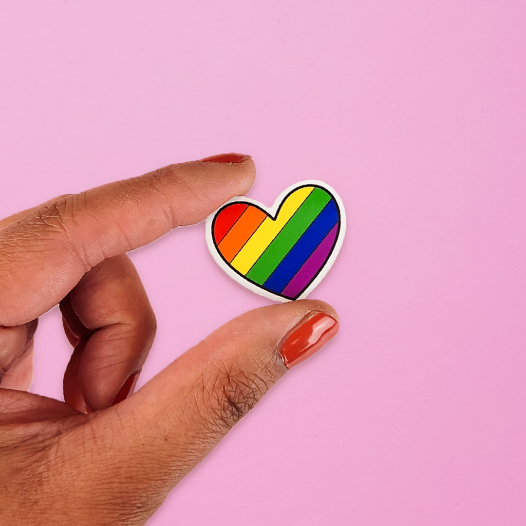 Show the world and your loved ones around you that you support the LGBTQ+ community with this cute heart-shaped sticker. It makes the perfect addition to your collection on your water bottle, mug or laptop.